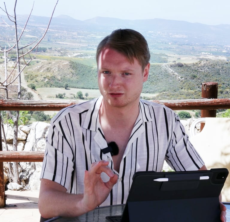 Our client sought to amplify their online presence and convey their expertise in facilitating learning, growth, and remote work. PJM took charge of every aspect, from arranging the shoot location at a scenic villa in Pafos' mountain area with sea views, to overseeing meticulous pre-production, production, and post-production phases. This concluded in creating a compelling Video Sales Letter (VSL) to promote the clients online course on financial freedom and remote working.